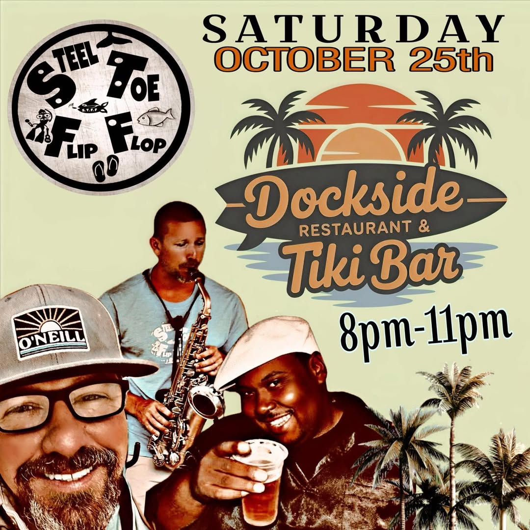 STEEL TOE FLIP FLOP Mark your Calendars For one Epic Night “STEEL TOE FLIP FLOP” is coming to Rock the Docks!! + Add to Google Calendar + iCal / Outlook export Date Oct 25 2025 Time 8:00 pm Location Dockside Restaurant & Tiki Bar 1787 Castlewood Dr, Colonial Beach, VA 22443 Website https://www.docksidetikibar.com Category Live Music Share this event